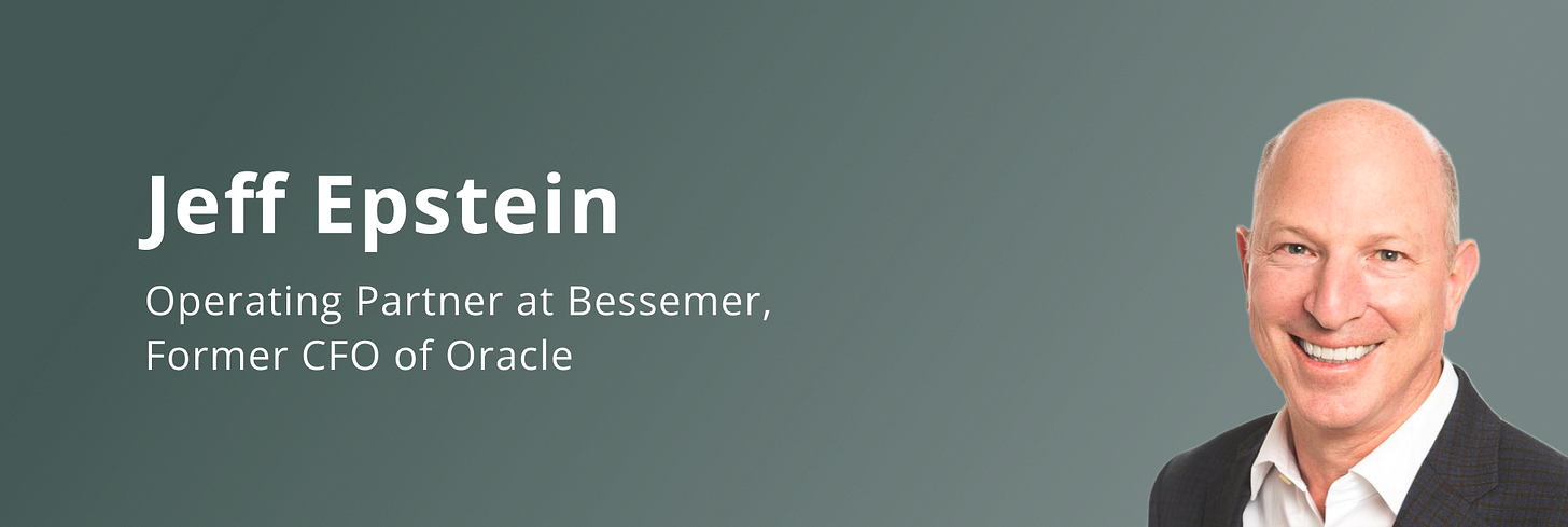 This week I am thrilled to tell you about my discussion with Silicon Valley legend Jeff Epstein. Jeff has had a storied Silicon Valley career - first as an investment banker, then as a CFO for 25 years (including at a company you may have heard of, Oracle), and now as an Operating Partner at Bessemer Venture Partners. In addition to his full-time roles, Jeff has sat on and currently sits on many boards, including Booking Holdings, Twilio, Okta, Kaiser Permanente, and Shutterstock, to name a few.